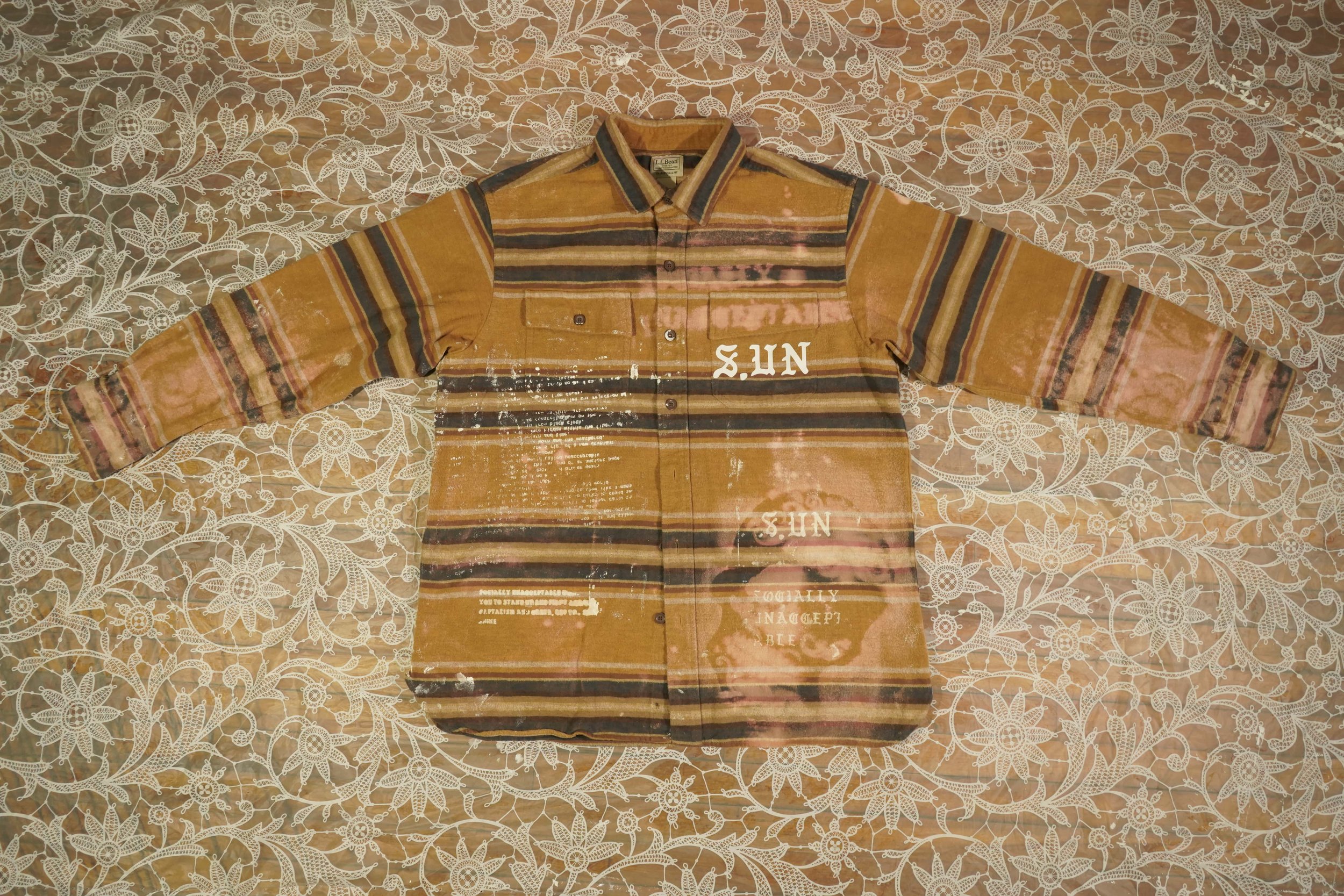 No two pieces are the same. Wear, fading, and fabric variation are preserved as part of the design. This isn’t a reproduction or a remake—it’s a revision. A flannel documented mid-process, printed again, and released without intention of being repeated.